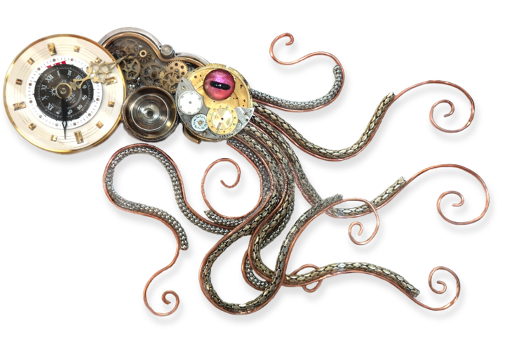 Our Stoptick sculptures are entirely handmade using recycled watch and clock parts sourced from around the world. Every piece is completely unique – the components change constantly, so no two will ever be the same. Sometimes, the parts we use are never found again.